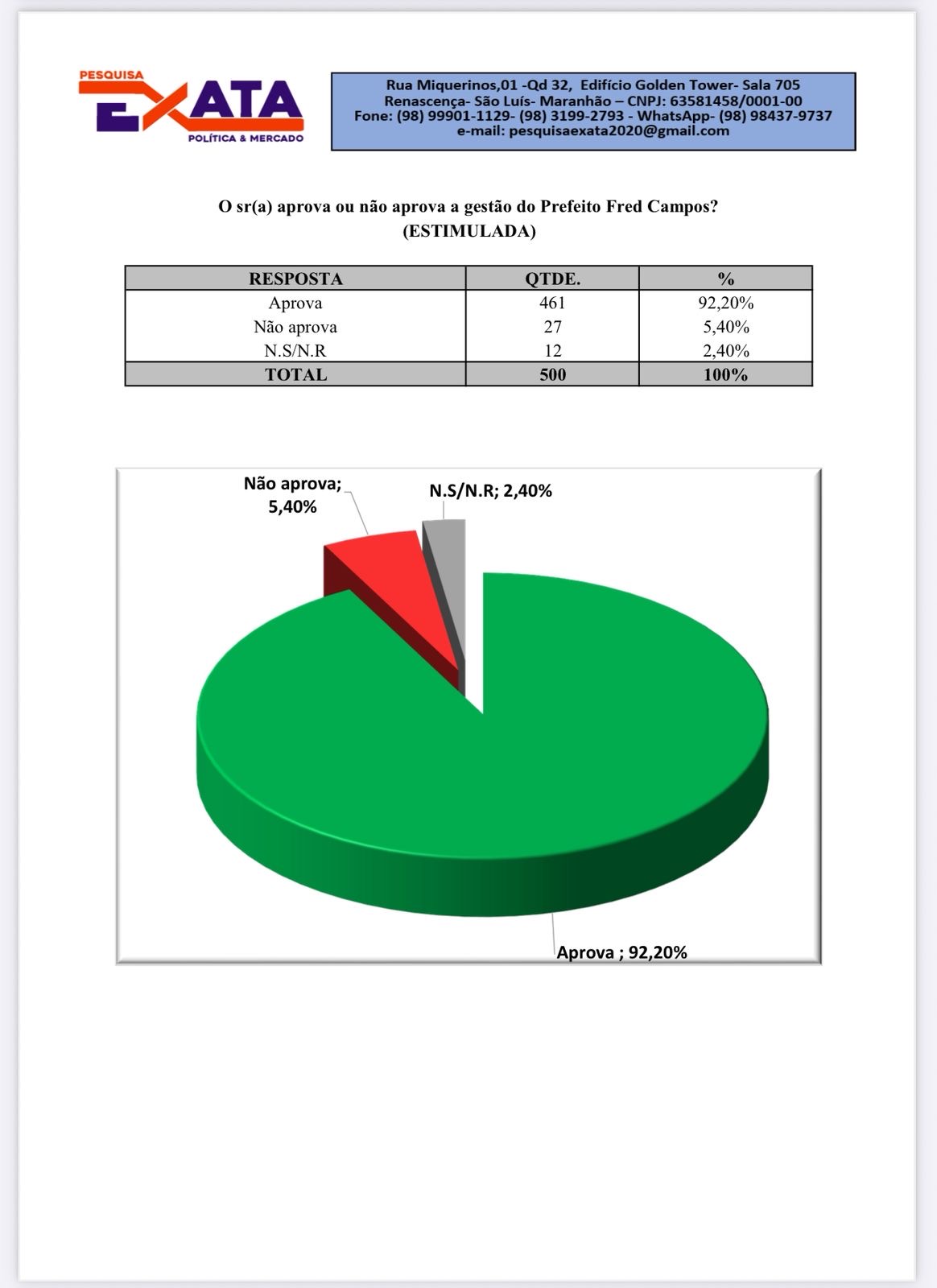 Essa aprovação quase unânime não é só um número: é um retrato da confiança que o povo deposita no trabalho de Fred Campos e a prova de que Paço do Lumiar vive uma nova era de desenvolvimento e esperança.